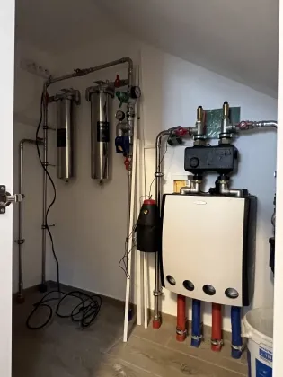К участку дома подведены все коммуникации: электричество (10 кВт), газопровод. В доме заведены городские водопровод и канализация, установлена система очистки питьевой воды.