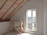 Снаружи фасад дома утеплен каменной ватой (минватой), что улучшает огнезащиту, тепло и звукоизоляцию, и отделан декоративной штукатуркой.