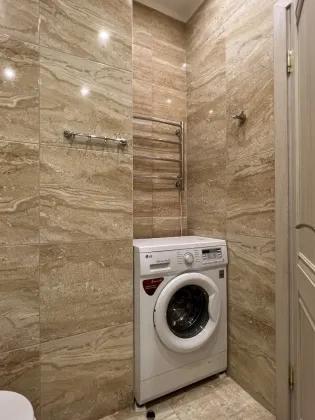 Санузел совмещенные, установлена ванная, полотенцесушитель электрический, стиральная машинка, фен.