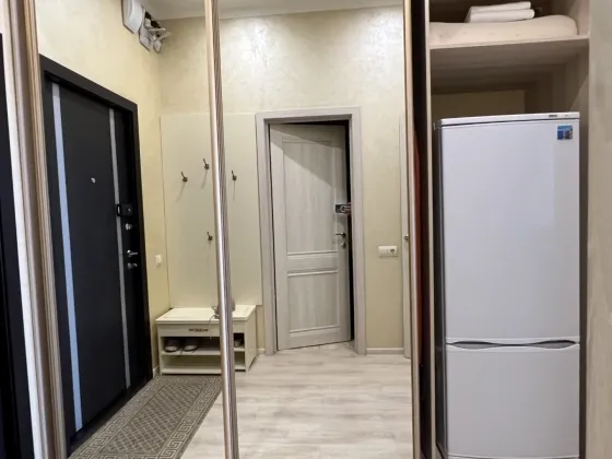 Общая площадь Апартаментов по документам 35 м2 + большая лоджия еще 6 м2. В апартаменте выполнен свежий дизайнерский ремонт в светлых тонах, применялись дорогие и качественные материалы, техника и сантехника. Состояние квартиры идеальное: все чистое и ухоженное!