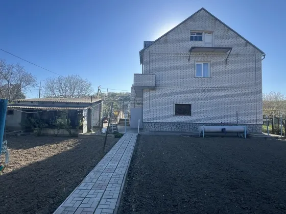 Построен дом в 1999 году из инкерманских блоков и отделан с наружи фасадом под кирпич. Вокруг дома ухоженная территория, плодородный чернозем. На территории домовладения имеются вспомогательные сараи, на которые оформлены право собственности.