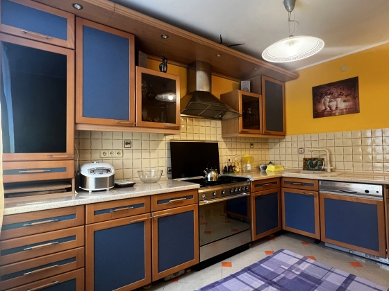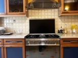 Кухня просторная 11,3 м2, полностью оборудована встроенной кухней, встроенной бытовой техникой (газовая плита на 5 конфорок со встроенным духовым шкафом, вытяжка, посудомойка).