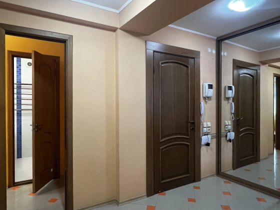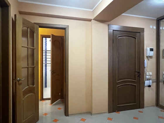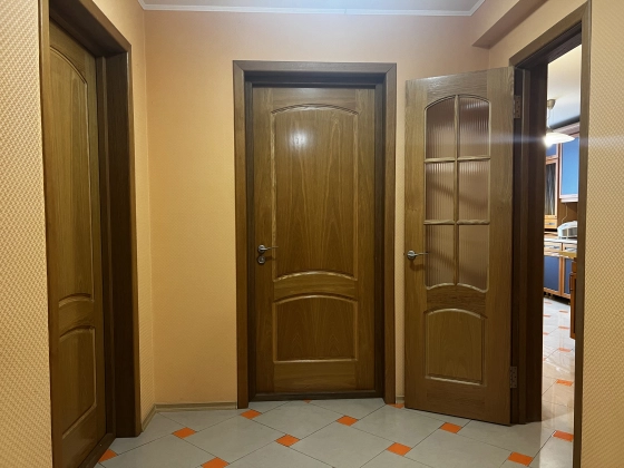 Квартира очень теплая, хорошая шумоизоляция – соседей не слышно. В квартире установлены двойные входные двери, качественные деревянные межкомнатные двери. В жилых комнатах на полу уложен ламинат, в прихожей, на кухне и в санузле – кафель.