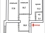 - Комната – 24,8 м2 со встроенным небольшим шкафом.