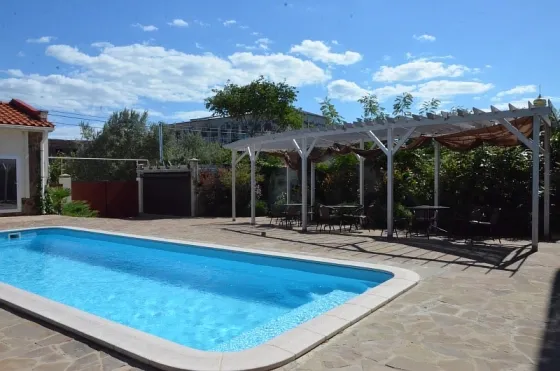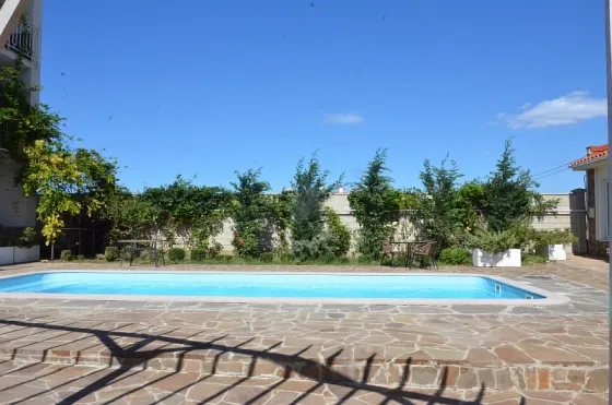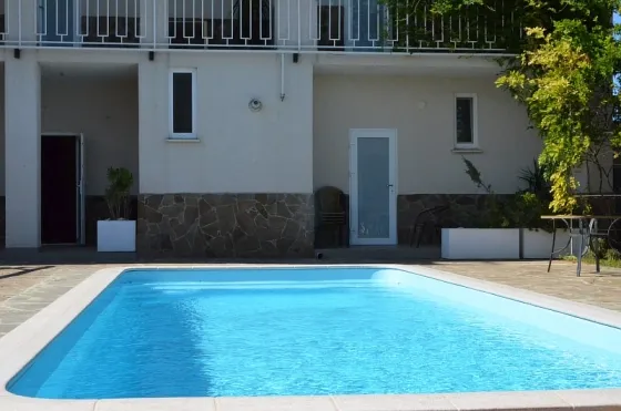 Благоустроенная и озелененная территория, новый бассейн с подсветкой и подогревом, сделана капитальная зона барбекю.