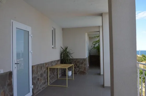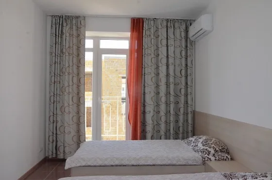 Во всех жилых номерах установлена новая спальная и кухонная мебель, газовые плиты, кондиционеры, бытовая техника. Участок мини-гостиницы площадью 8,26 сот. Гостиница состоит из основного 3-х этажного жилого корпуса площадью 297 м2 в котором размещено 9 жилых 2-х комнатных номеров от 38 м2 до 43 м2 с отдельным входом с улицы. Все номера имеют выделенную спальную комнату с лоджией, с которой открывается вид на море; просторную кухню-студию 21-23 м2, заведены все коммуникации, подключены газовой плиты (газовые плиты только на 1-м и 2-м этажах). В каждом номере оборудованы санузлы с установленной сантехникой - душевые кабины, раковины, унитазы.