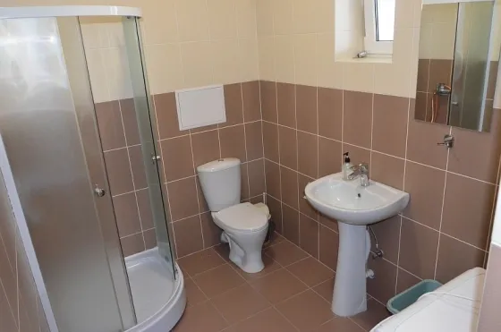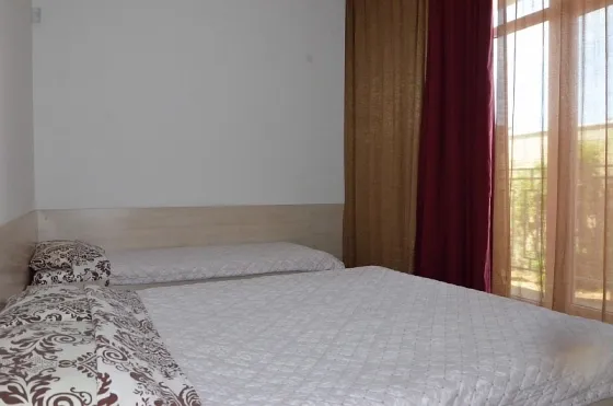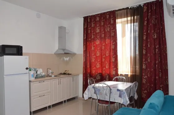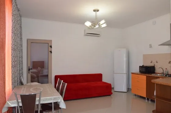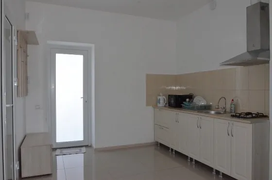 Отдельно стоящий, одноэтажный корпус 40 м2 в котором располагается двухкомнатный жилой номер: спальная комната 15 м2 и кухня-столовая 24 м2; собственный санузел. В номере индивидуальное отопление от двухконтурного газового котла. В номере установлен кондиционеры, встроенная кухонная мебель, вытяжка, стиральная машина.