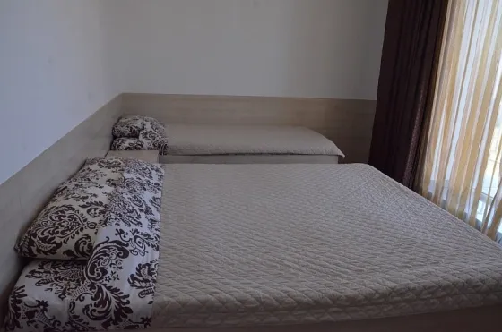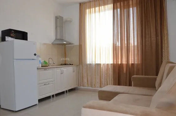Рядом, на расстоянии 300 метров, на выбор, большая пляжная зона, а именно: песочный, не глубокий пляж бухты Омега, где приятно и комфортно проводить время с детьми из-за его мелководья. На побережье расположены кафе, рестораны, благоустроенные пляжные зоны, станция катамаранов и многое другое. Или же, галечный (дикий) пляж со стороны открытого моря, где можно комфортно поплавать, понырять и пожарить вкусный шашлычок у кромки воды.