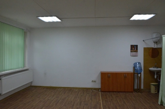 Находится помещение на 1-м этаже 4-х этажного здания. Помещение светлое, общая площадь 32 м2, два окна, на окнах со стороны улицы установлены решетки. Помещение в хорошем состоянии, сделан косметический ремонт. В кабинете подведена холодная вода и канализация, для нагрева воды установлен бойлер, на окнах повешены жалюзи. Проведен интернет. Помещение сдается без мебели.