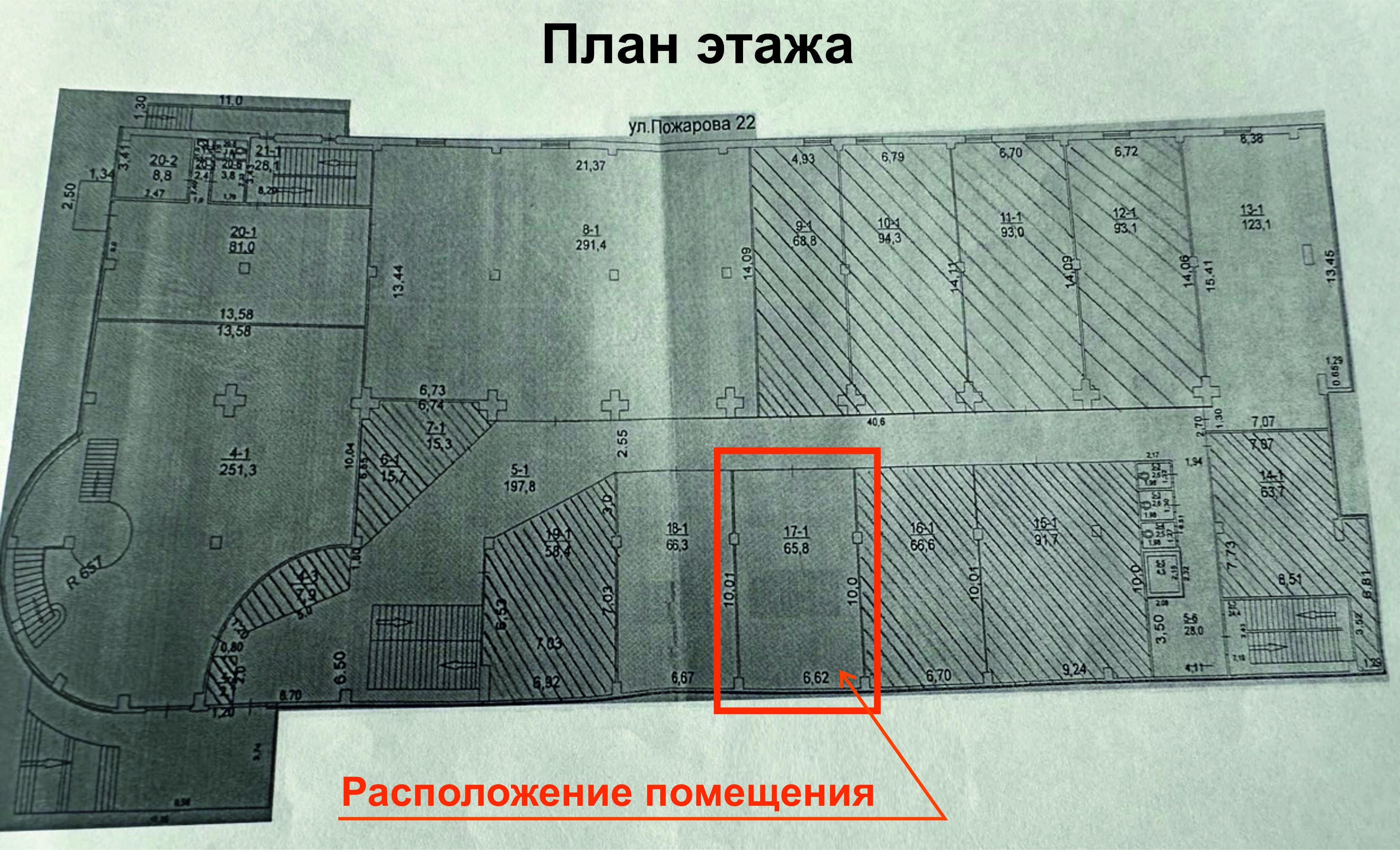 Продаётся коммерческое помещение площадью 65,8 м² в ТЦ по адресу: ул. Пожарова, 22.