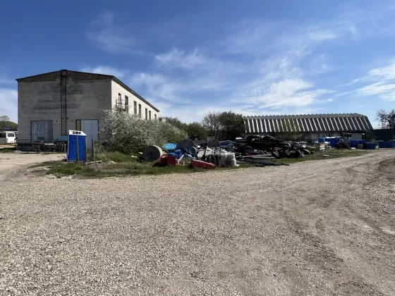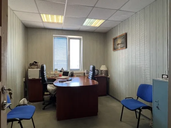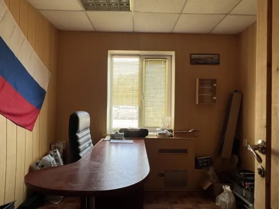 Административно-бытовое здание, 2-х этажное (сдается в аренду): на первом этаже два ангара с высотой потолка 6 м и офисные помещения на втором этаже с отдельным входом.