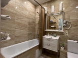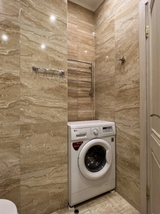 Санузел совмещенные, установлена ванная, полотенцесушитель электрический, стиральная машинка, фен.