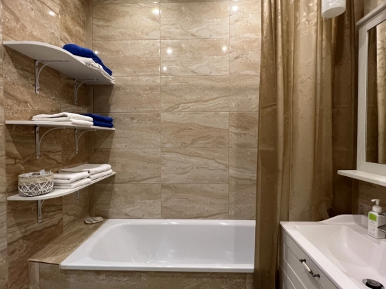 В квартире постоянное горячее водоснабжение, центральное отопление; интернет, телевидение. Апартамент полностью укомплектованы «под ключ» для постоянного проживания, или под сдачу в аренду!
