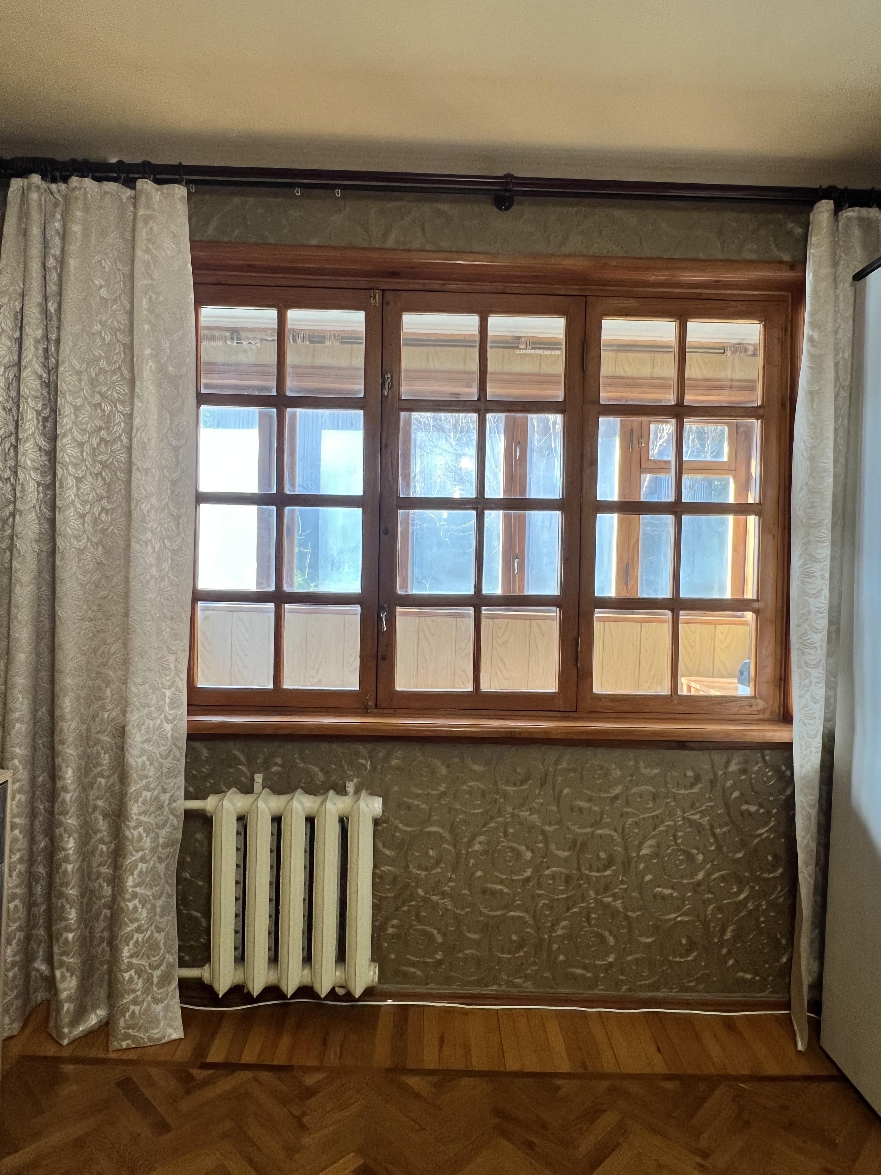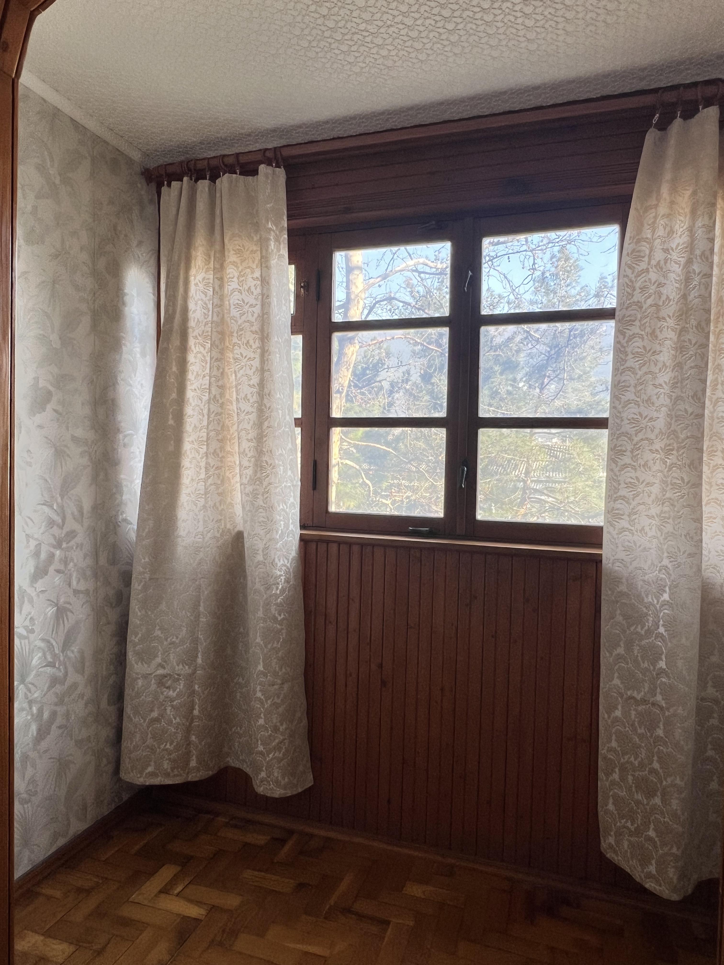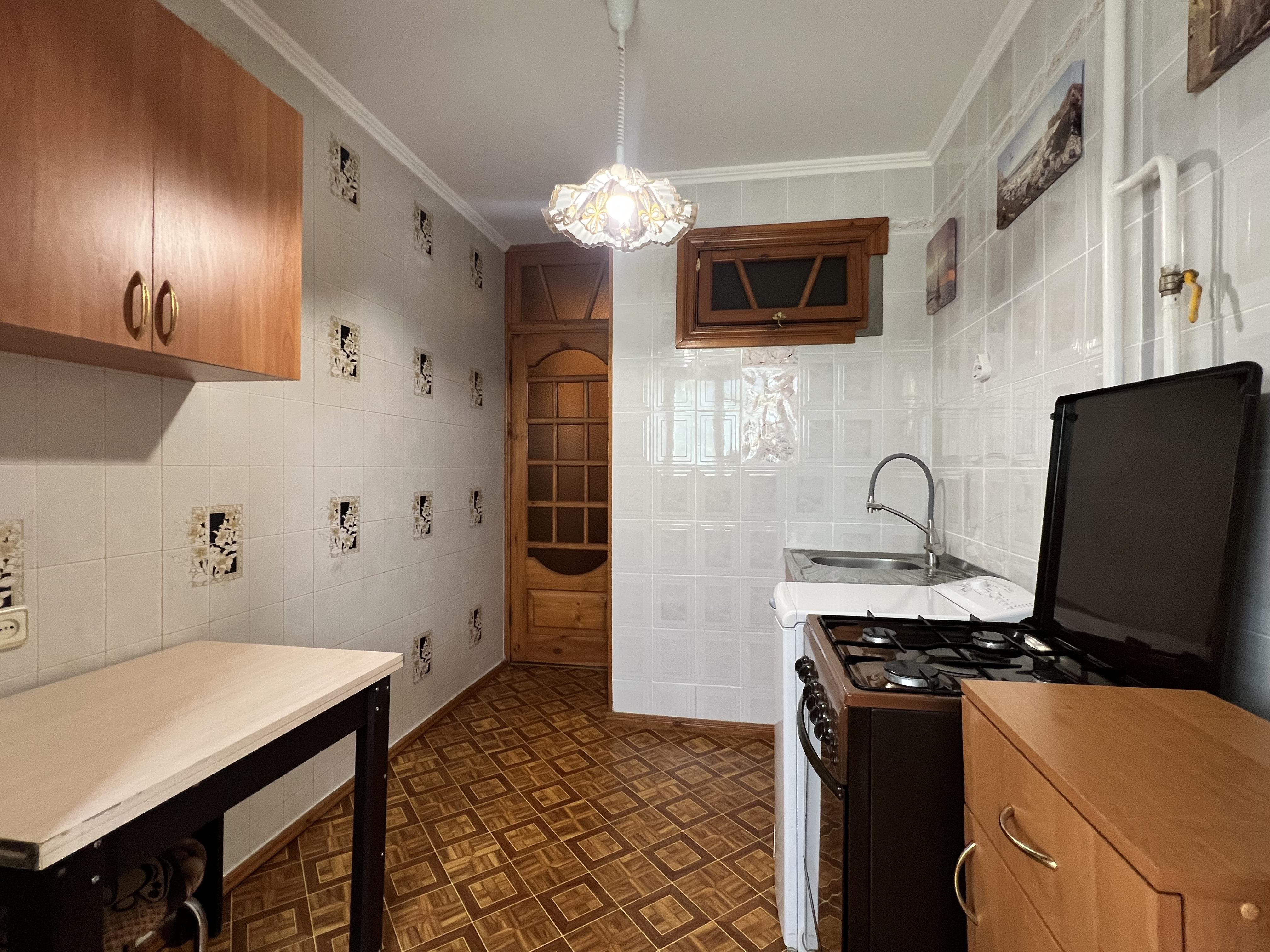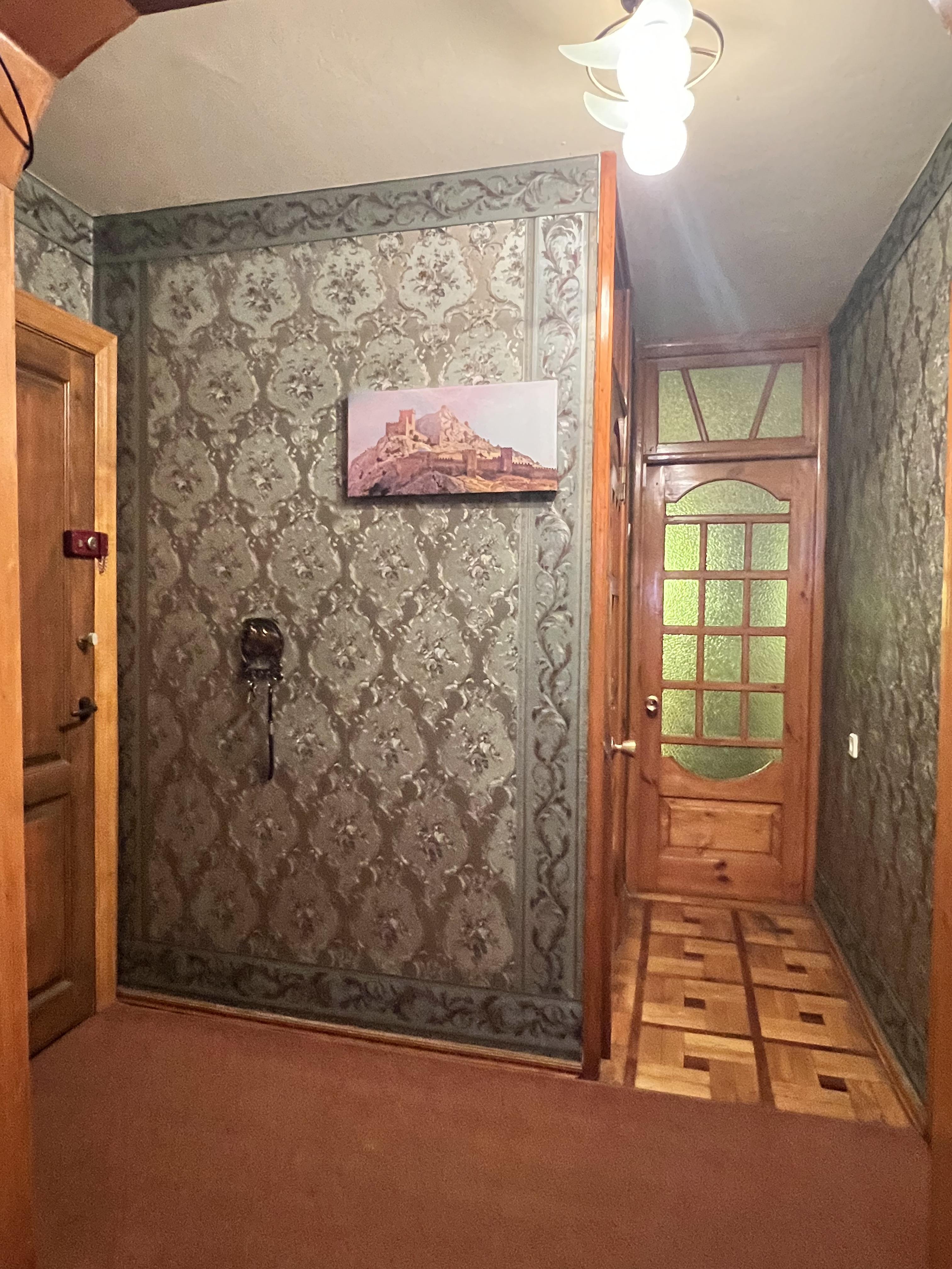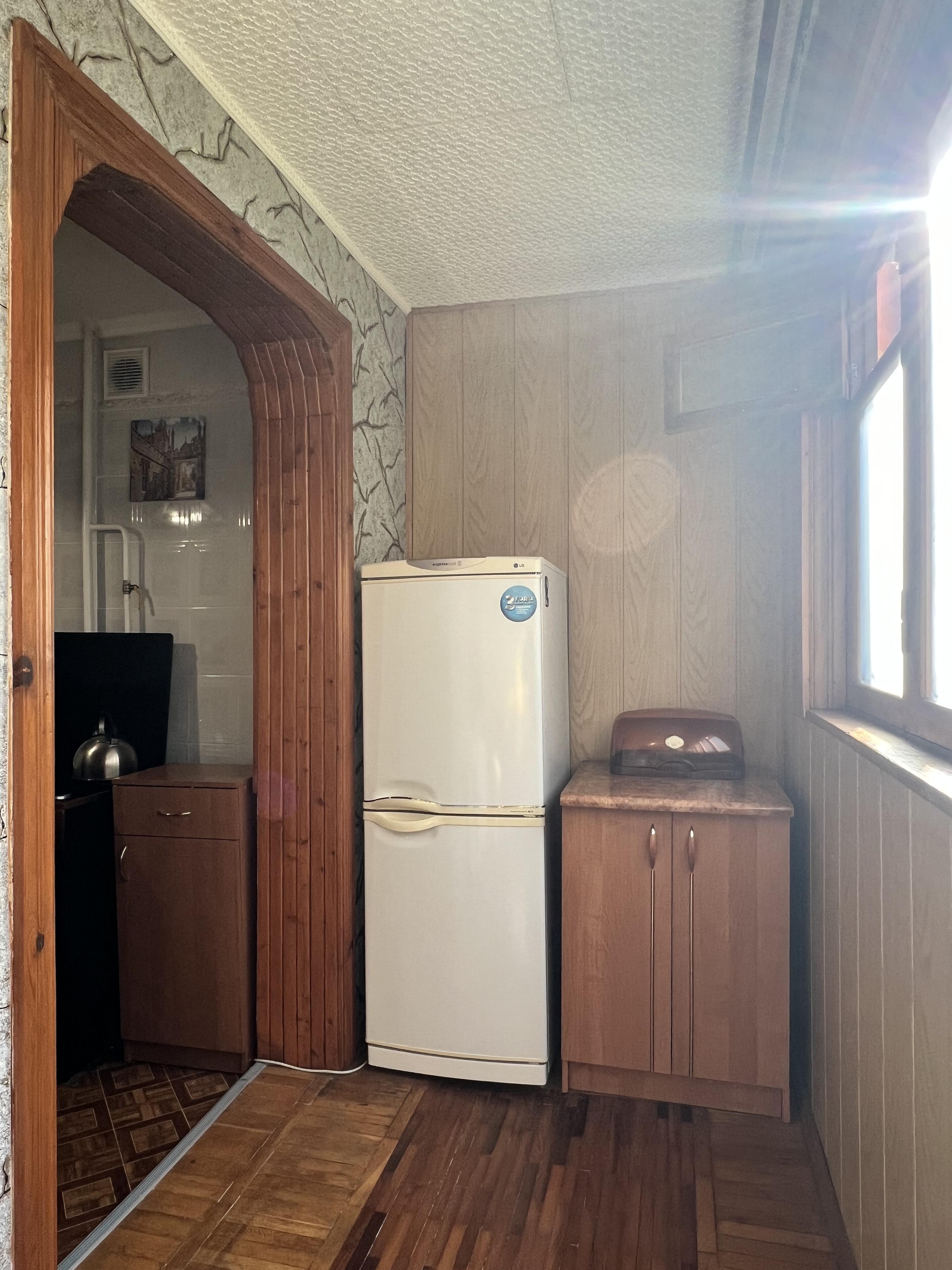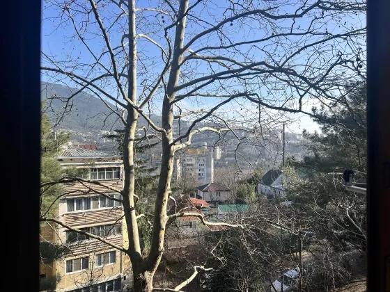В квартире две раздельные комнаты: 1-я комната 11,2 м2 с застекленным балконом 3,4 м2, вид из окна на город и горы.