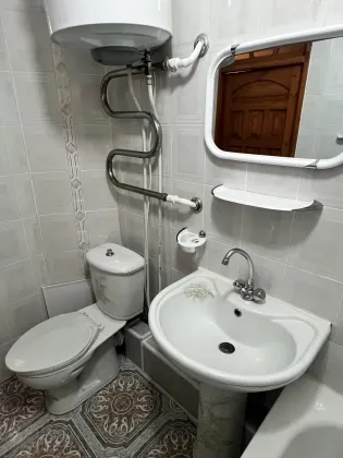 санузел совмещенный: площадь 3,3 м2, установлена итальянская ванная, электрический бойлер для нагрева воды на 50 л., которому сделано полностью техническое обслуживание, что в свою очередь дает очень хороший нагрев воды.
