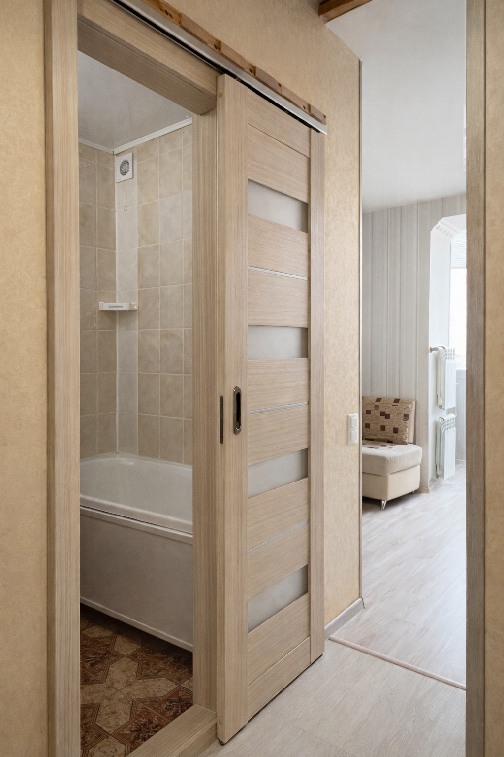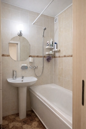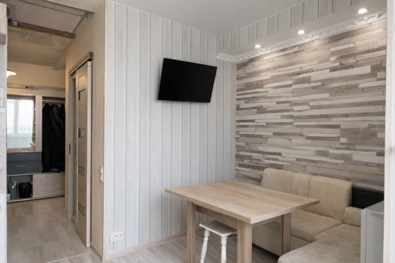 Планировка практичная и удобная для жизни: просторная кухня площадью 11 м², прихожая 11 м², раздельный санузел, ванная комната 2,8 м² и туалет 1,4 м². Квартира в жилом состоянии, требуется лёгкая косметика, поэтому у нового собственника будет возможность быстро освежить интерьер под свой вкус без серьёзных вложений и капитального ремонта.