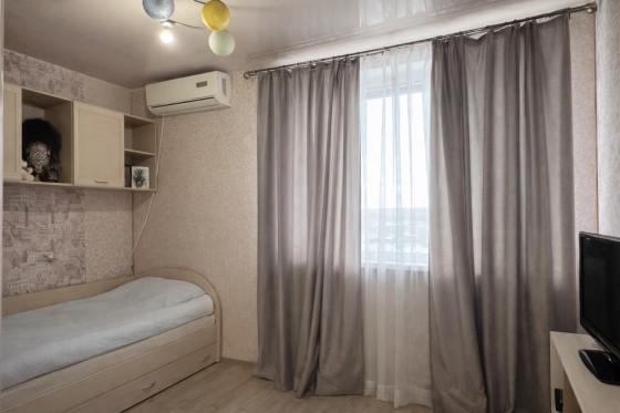 Квартира продаётся частично с мебелью: остаётся встроенная кухня, мебель в прихожей и частично мебель в детской комнате. Это позволяет заехать без лишних стартовых затрат и обустраивать пространство постепенно, в комфортном для себя темпе.