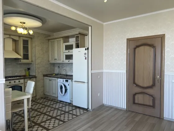Квартира светлая, теплая, с хорошим ремонтом. Продается со всей необходимой встроенной мебелью и бытовой техникой. Дополнительно, в стоимость квартиры входит закрепленное парковочное место под накрытием.