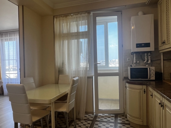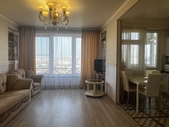 Квартира расположена на 4-м этаже 5-ти этажного дома, рядом с парком Победы и морем. Дом введен в эксплуатацию в 2013 году. У дома собственная закрытая автостоянка.