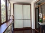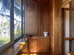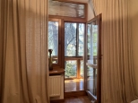 - Комната (хозяйская спальня) – 22,6 м2 с выходом на большой балкон (веранда) площадью 13,8 м2 с большими окнами. Комната обставлена деревянной спальной мебелью, одежным шкафом, телевизор. На балконе установлен большой гардеробный шкаф.