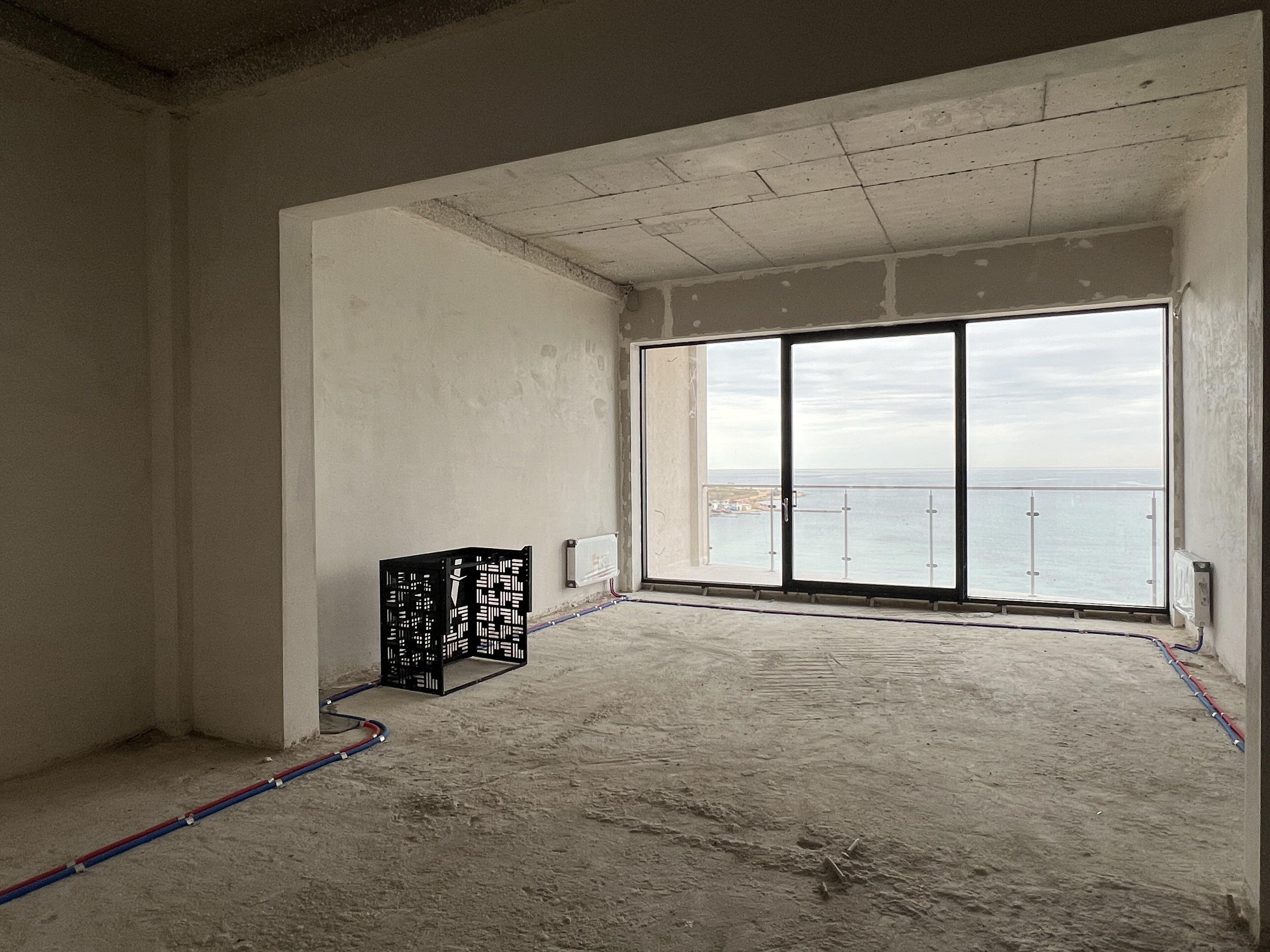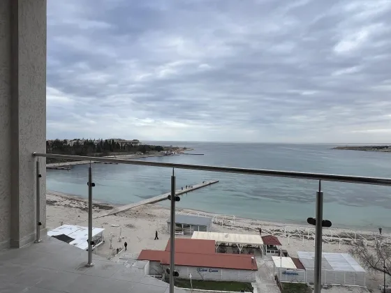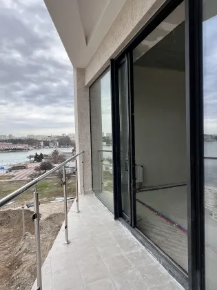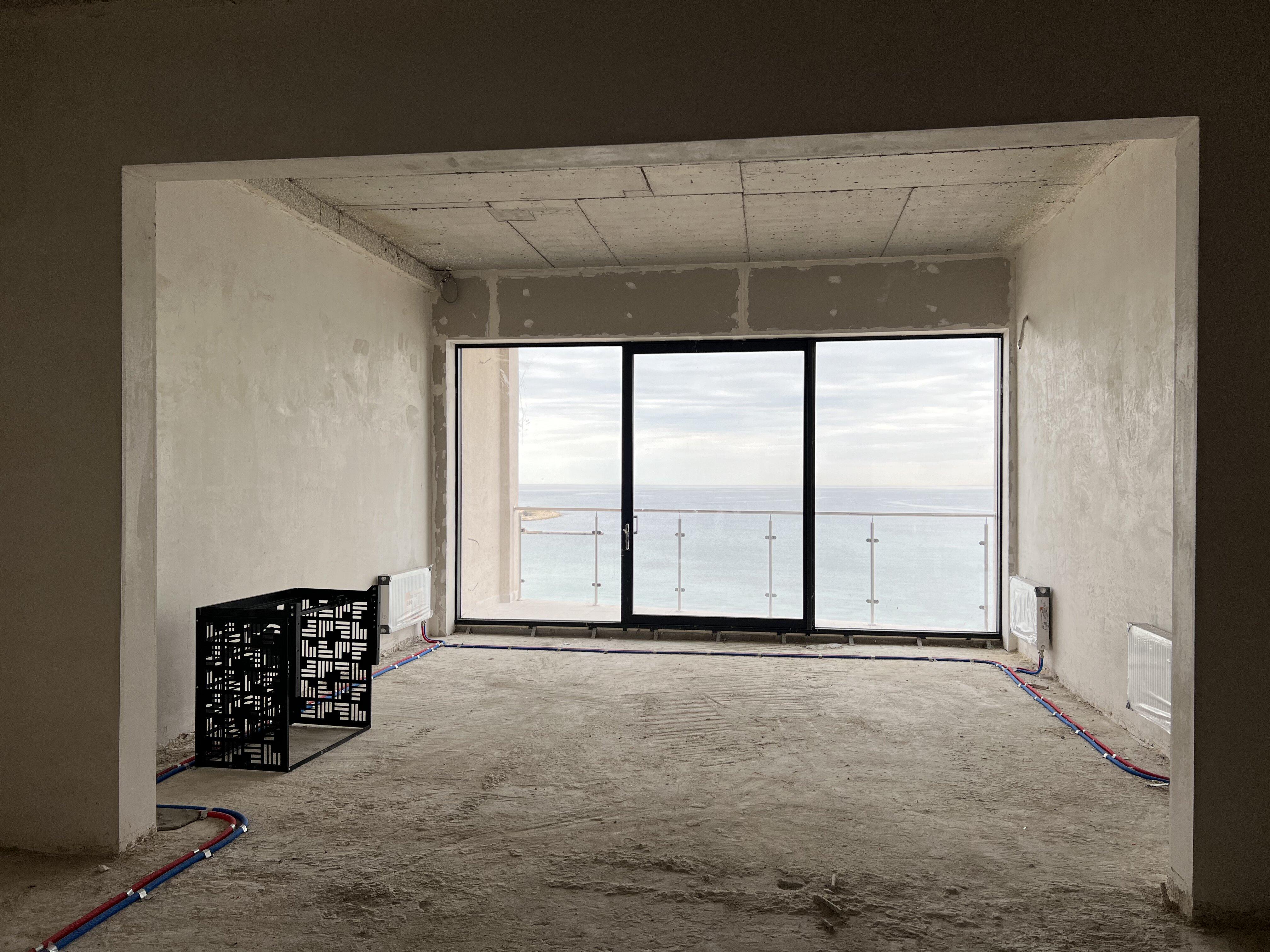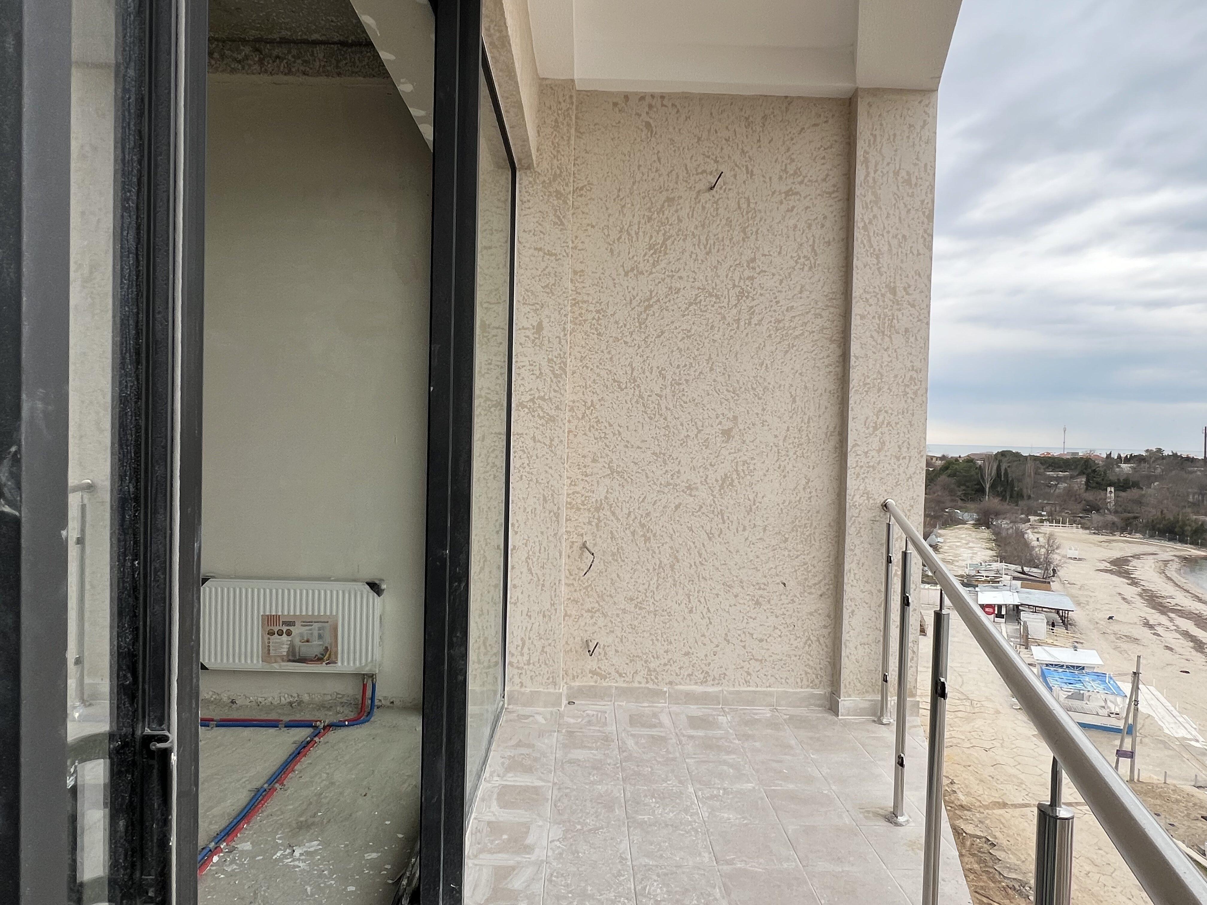 Общая площадь апартаментов 72,4 м2, в том числе: жилая площадь 51,5 м2, прихожая 7,4 м2, санузел 7 м2 и балкон с видом на море 6,8 м2. Высокие потолки 3,6 м.