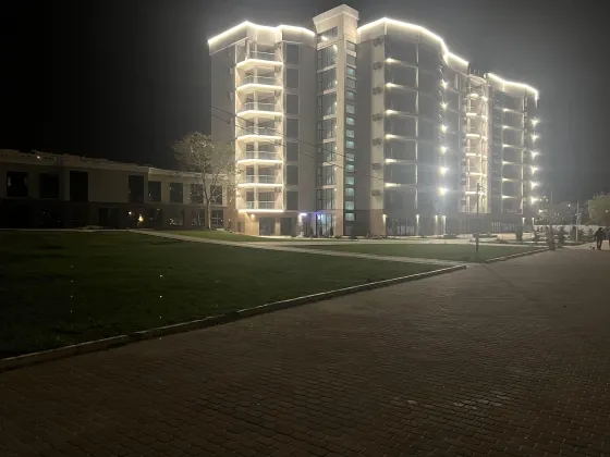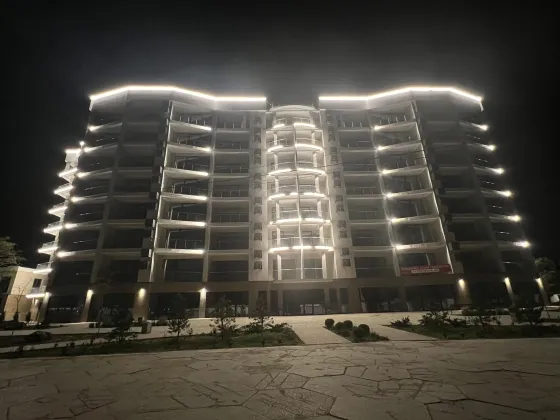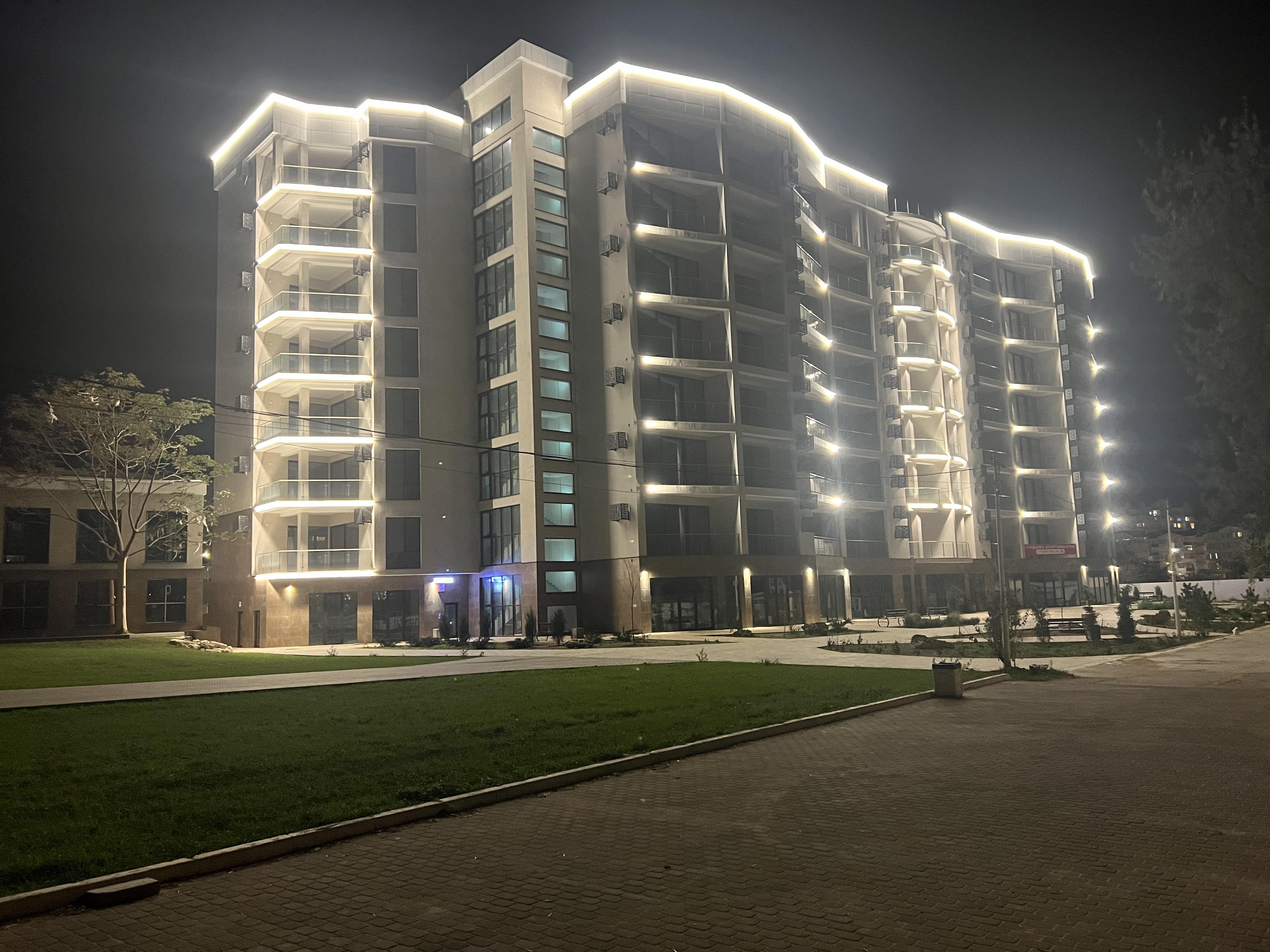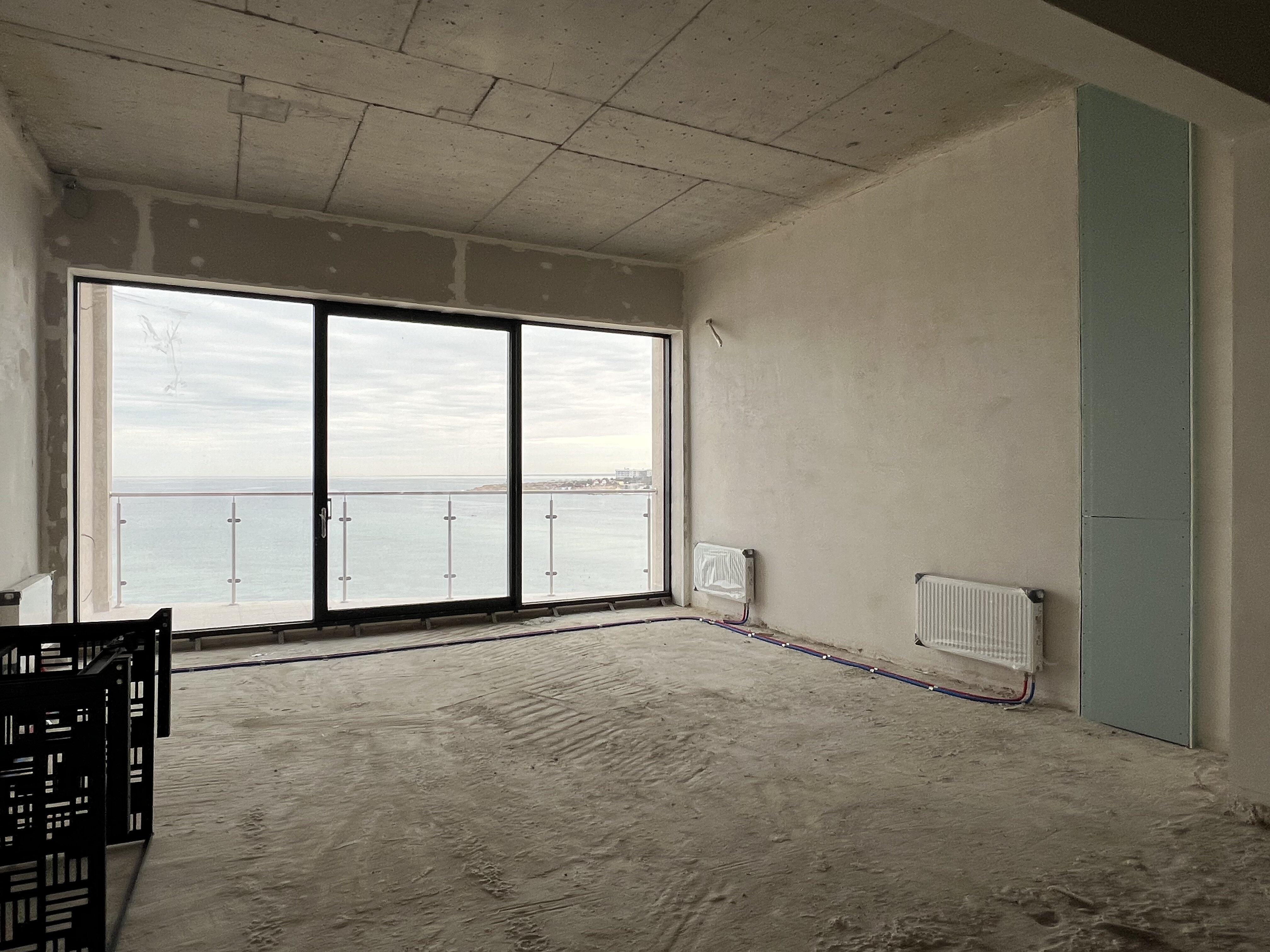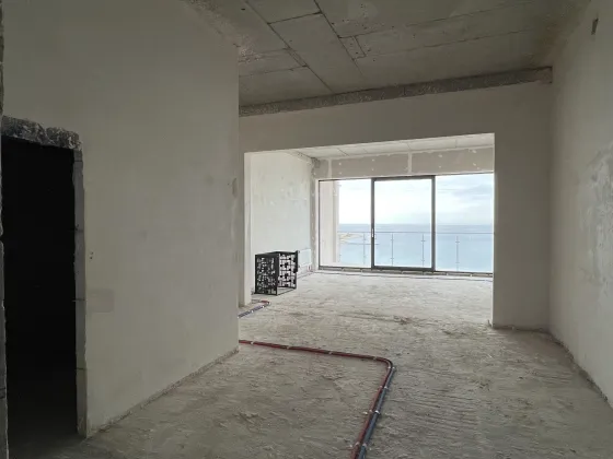 Общая площадь апартаментов 72,4 м2, в том числе: жилая площадь 51,5 м2, прихожая 7,4 м2, санузел 7 м2 и балкон с видом на море 6,8 м2. Высокие потолки 3,6 м.