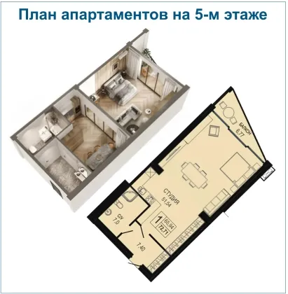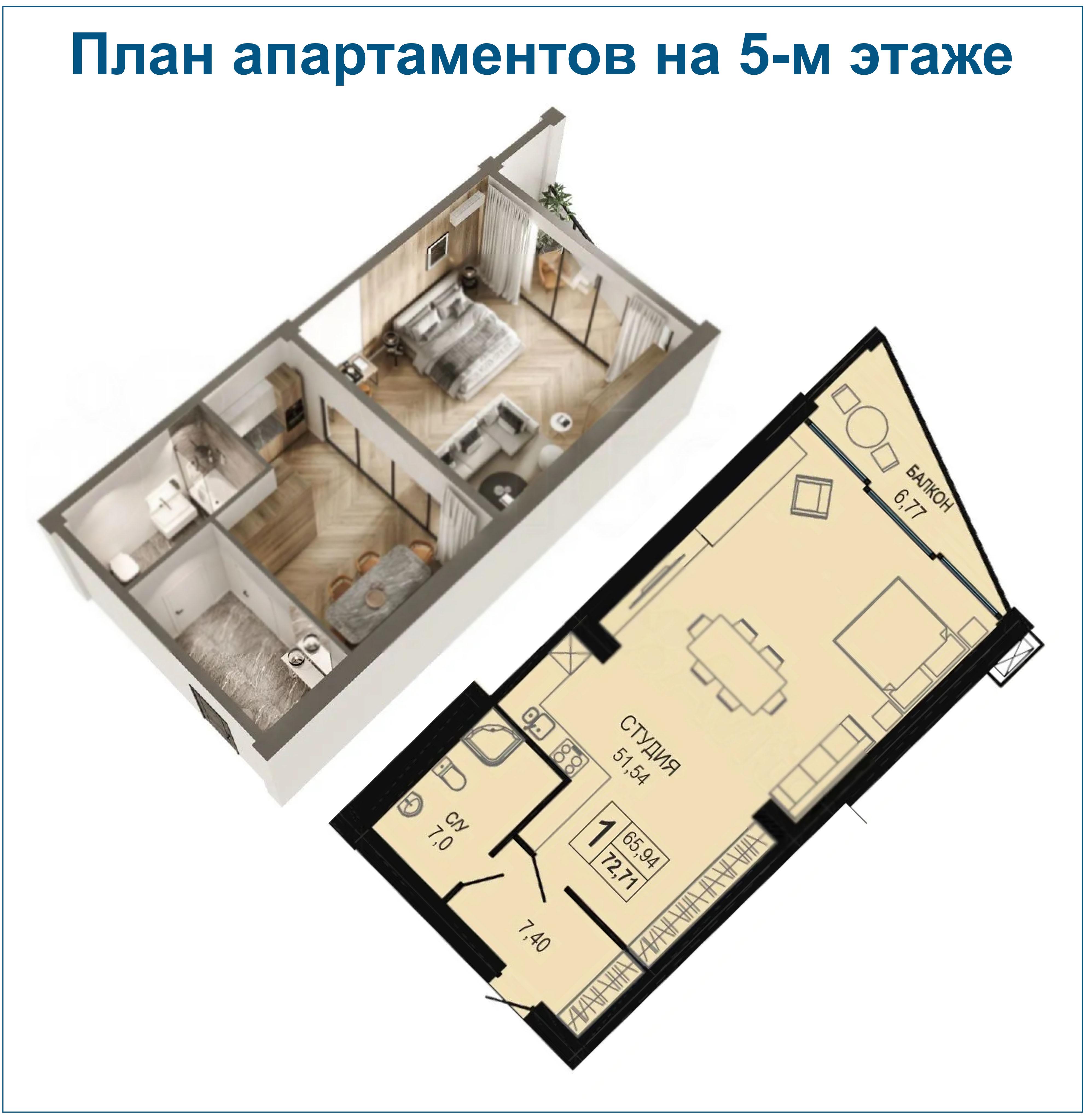Продается Студия квартира, 72.4 кв.м., 5/7 эт
