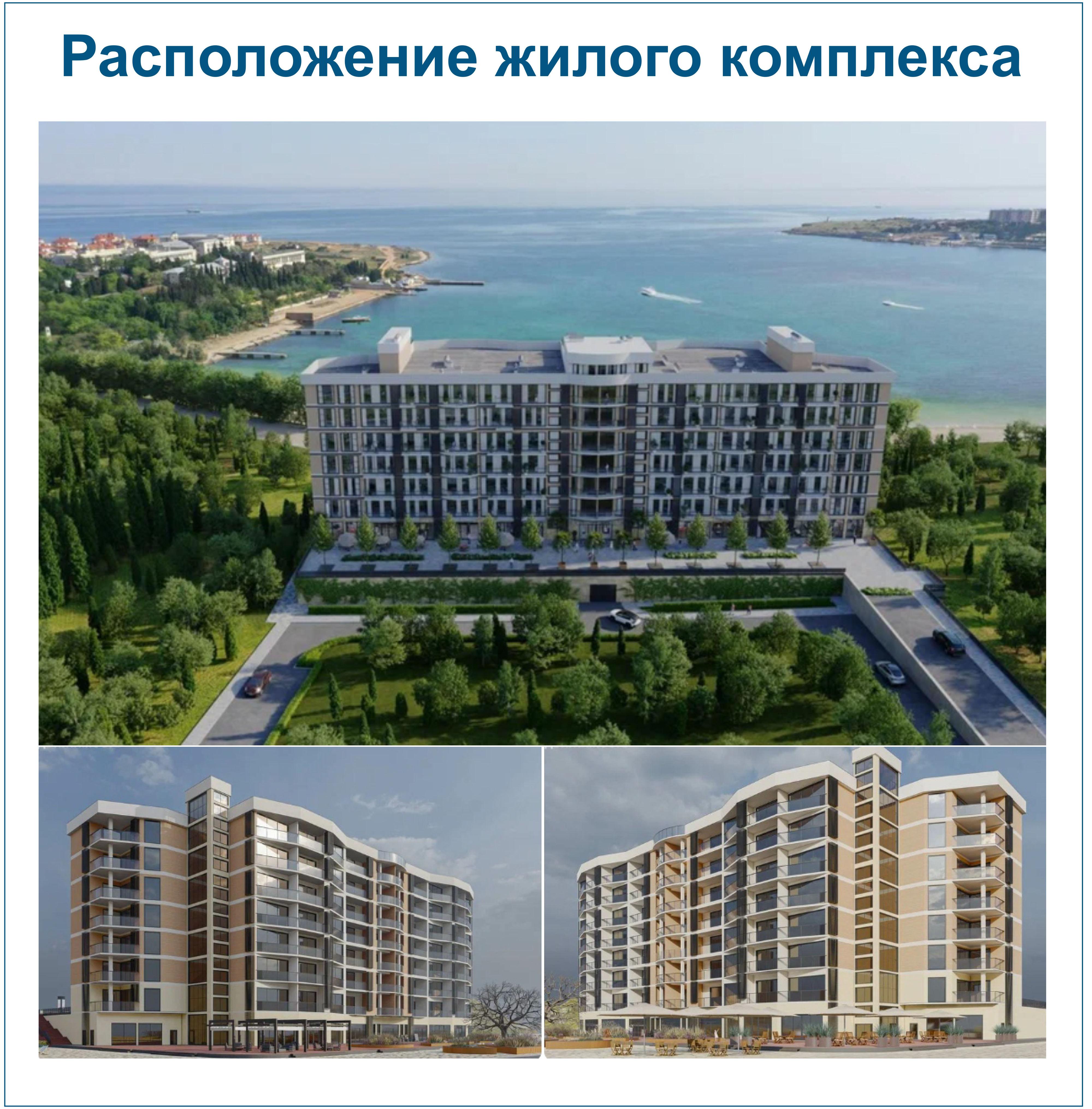 Апартаменты (квартира-студия) расположена по адресу: г. Севастополь, ул. Пляж Омега, 24, в ЖК Акватория на 5-м этаже/7-ми этажного дома.
