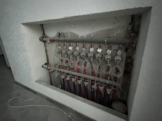 Отопление и горячая вода от общей газовой котельной. В квартире установлены батареи отопления, приборы учета на горячую/холодную воду и электросчетчик – в коридоре и имеют свободный доступ.