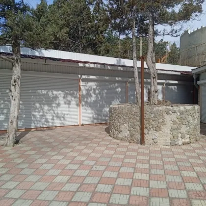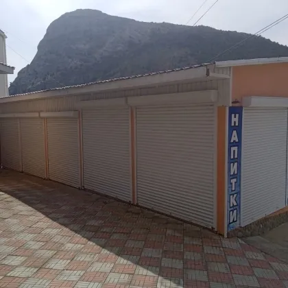 На участке размещено 17 шт. торговых павильонов от 4 м2 до 10 м2, имеют кадастровые номера; статус – нежилые. Все павильоны в отличном состоянии – заведено электричество (20 кВт, 3 фазы); установлены роллеты; ежегодно сдаются в аренду в летний сезон. Отличное предложение для бизнеса.