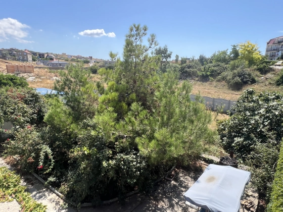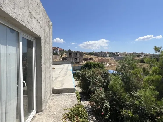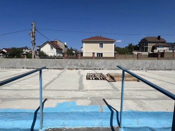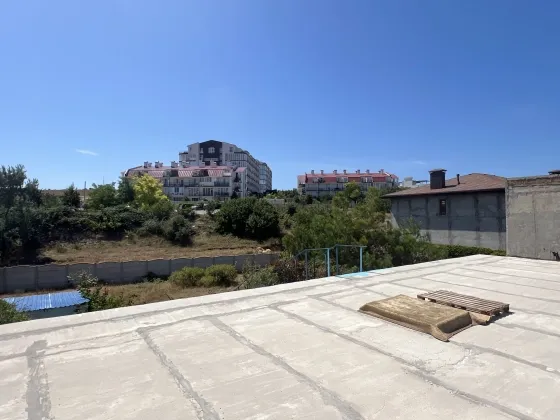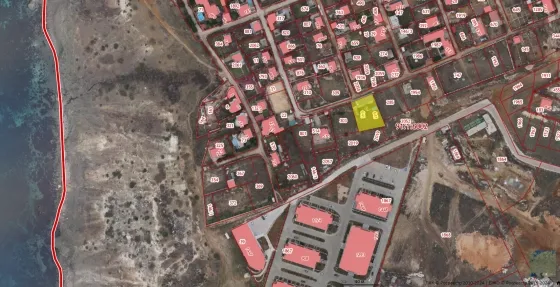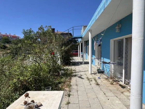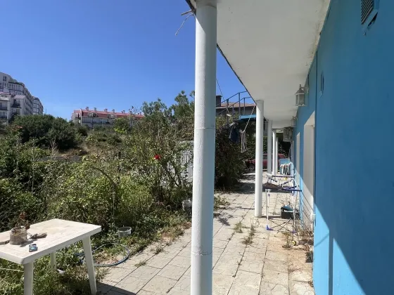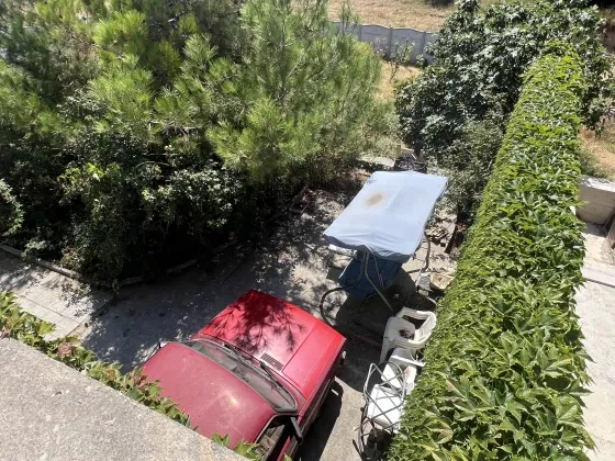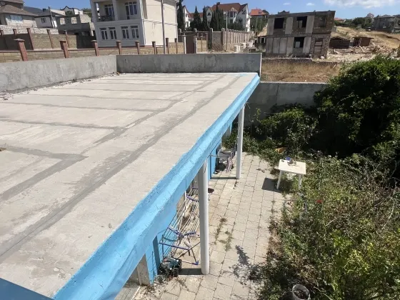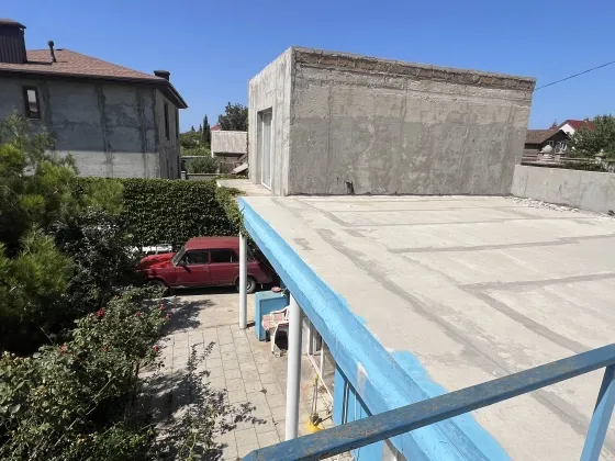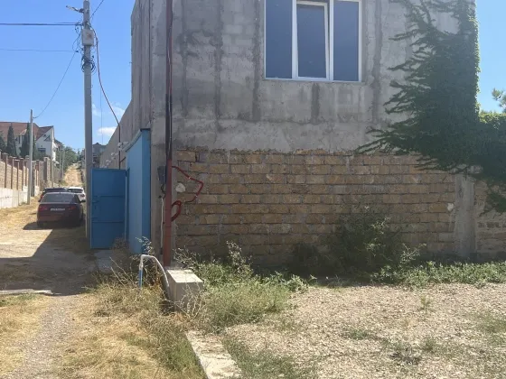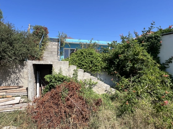 На участке, по фасадной линии имеется каменное строение не зарегистрировано как объект недвижимости, площадью 253 м2, которое изначально предполагался как здание для проживания, состоящий из 5-ти комнат на первом этаже площадью 19 м2 каждая; навес для машины. На втором этаже жилая комната 20 м2 и терраса 134 м2.